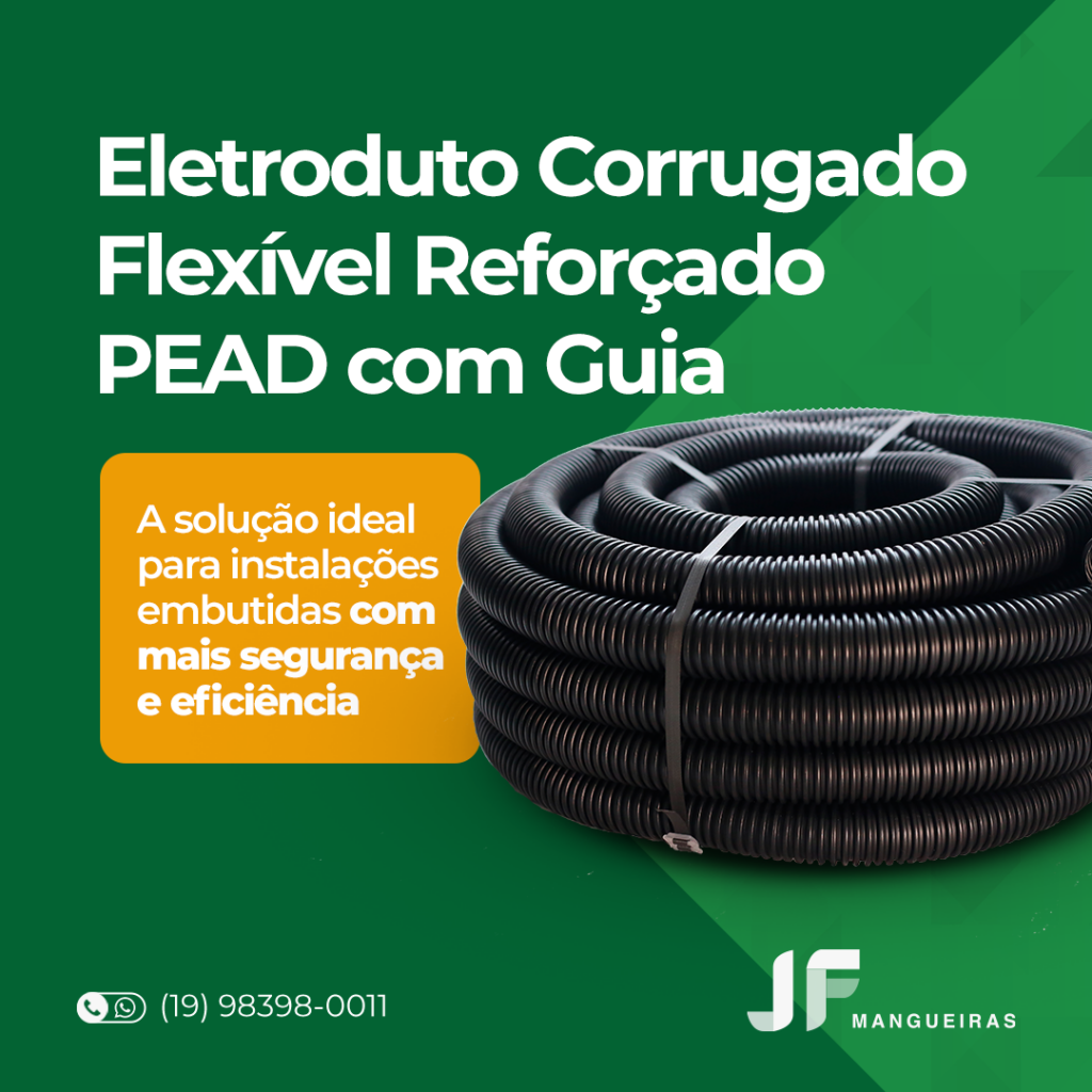 O Eletroduto Corrugado Flexível Reforçado PEAD com Guia é uma escolha prática, resistente e segura — ideal para projetos desafiadores e que exigem máxima proteção da fiação.